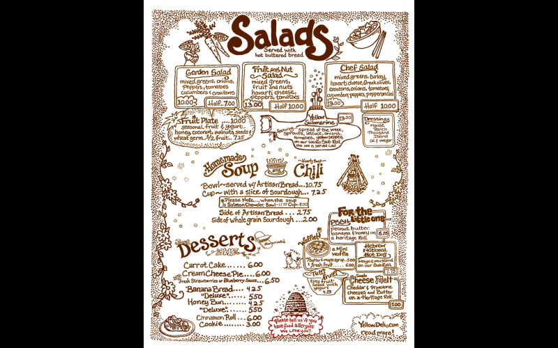 Please visit the Yellow Deli in Boulder, Colorado. We are just one block up the street from the Pearl Street walking mall.