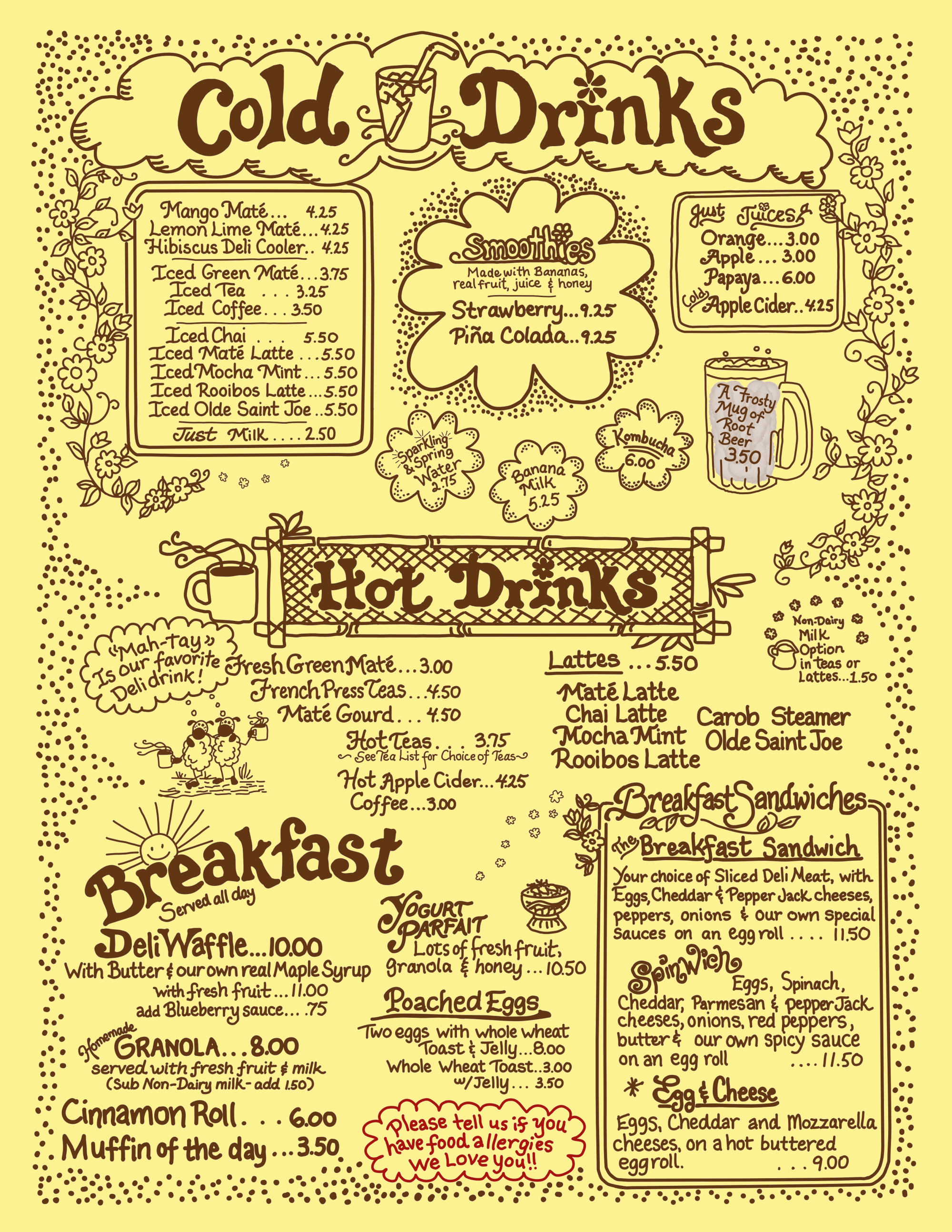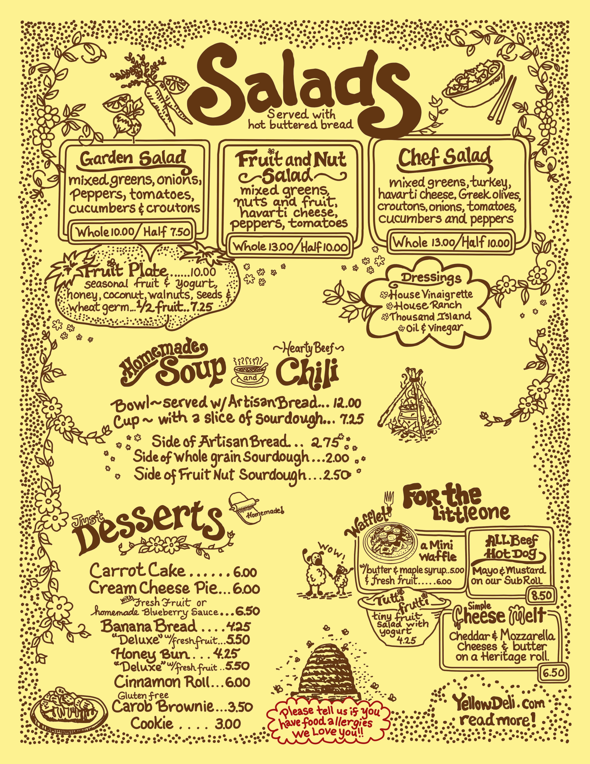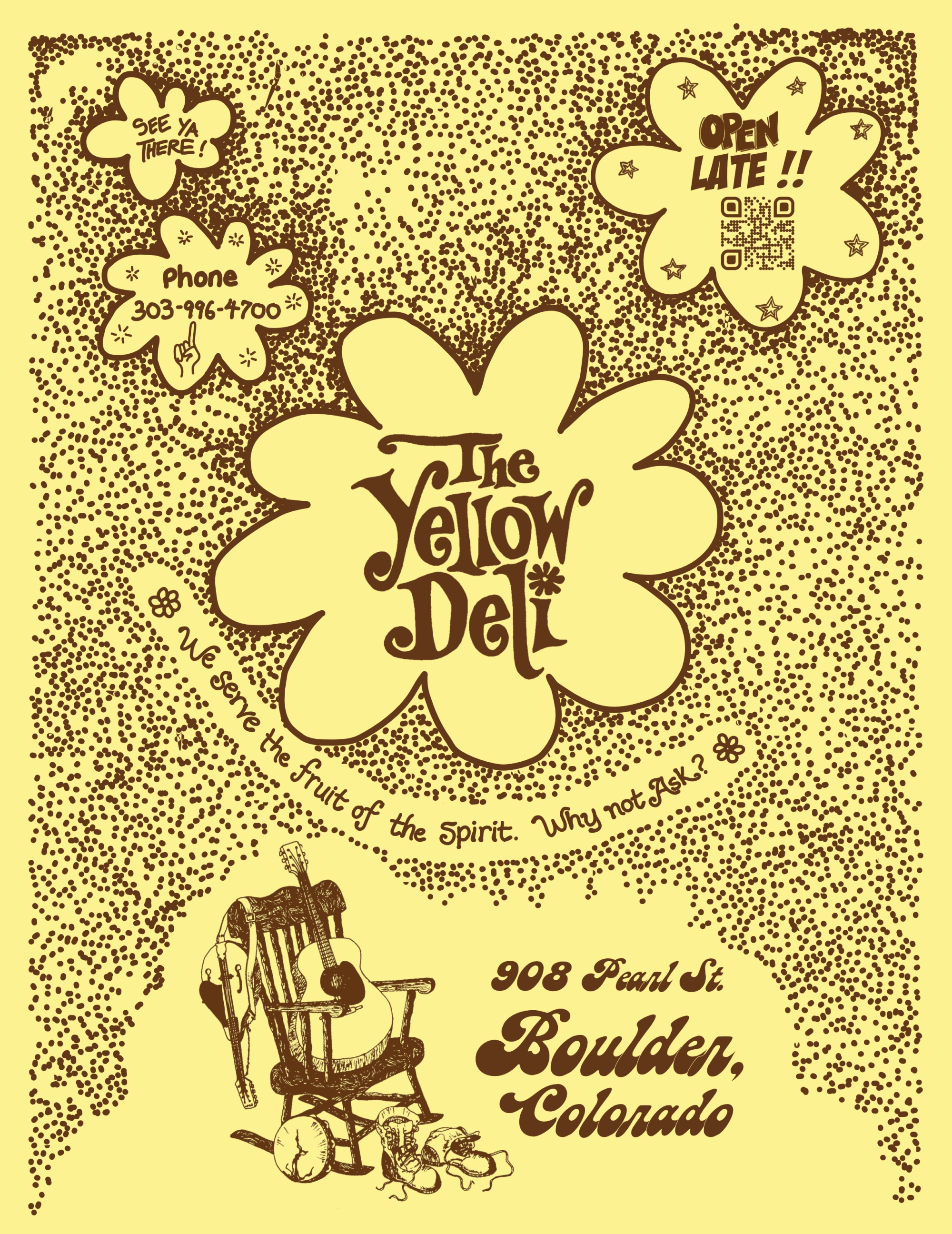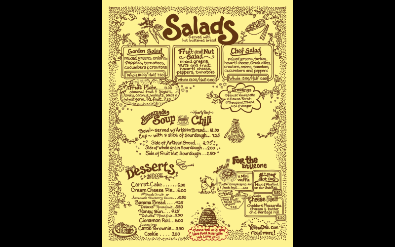 Please visit the Yellow Deli in Boulder, Colorado. We are just one block up the street from the Pearl Street walking mall.