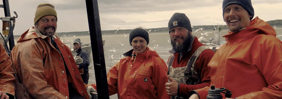 Pamphlet Read A family of fishermen Working together to bring in the catch Here's a big one PreviousNext PreviousNext